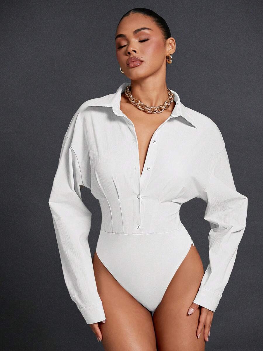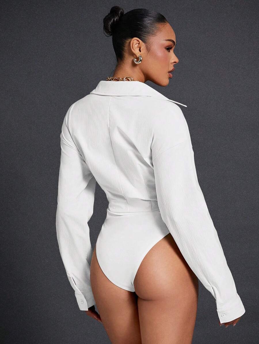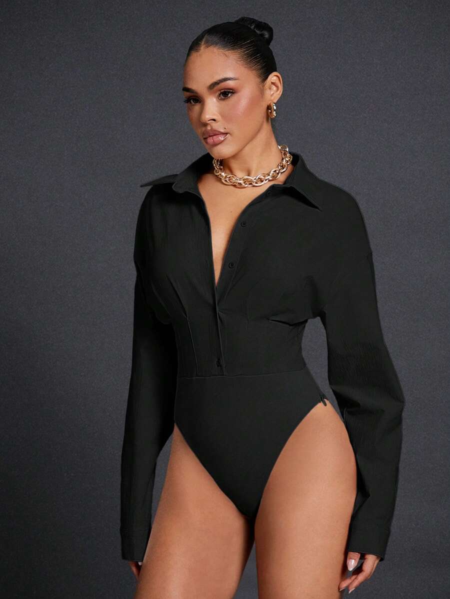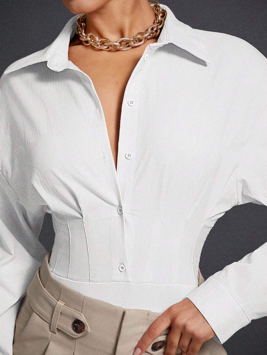 Redefine everyday elegance with the Stylish Long Sleeve Shirt Bodysuit, a perfect blend of sophistication, comfort, and versatility. Designed to deliver a polished, tucked-in look that stays flawless all day, this bodysuit combines the refined style of a classic shirt with the functionality of a fitted bodysuit. Crafted from soft, stretchable fabric, it offers a sleek fit that flatters every figure while ensuring all-day comfort. Perfect for the office, casual outings, or evening events, it pairs effortlessly with skirts, trousers, or jeans for a chic, put-together look.