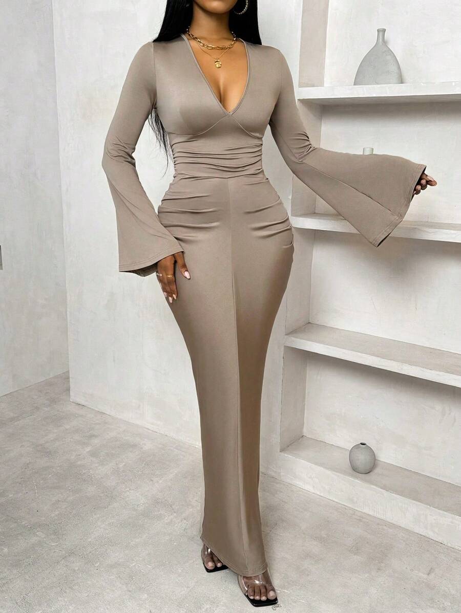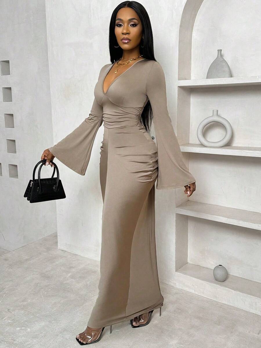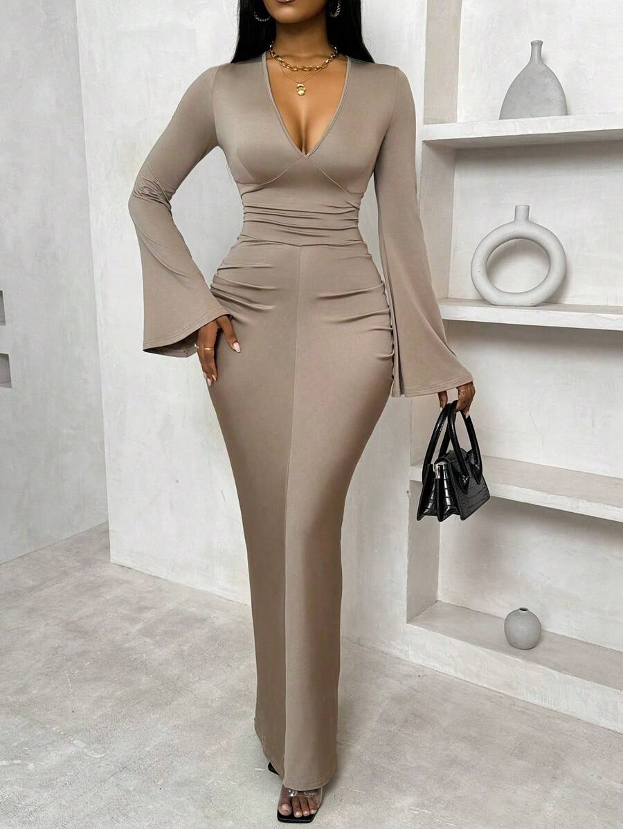Step into timeless elegance with the Women’s Solid Color Flared V-Neck Dress, a beautifully designed piece that combines classic charm with modern sophistication. Crafted from soft, breathable fabric, this dress features a flattering V-neckline and a gently flared silhouette that enhances your natural shape while allowing graceful movement. The solid color design offers effortless versatility, making it perfect for casual outings, office wear, or special occasions. With its balance of comfort and style, this dress is a must-have addition to every woman’s wardrobe.